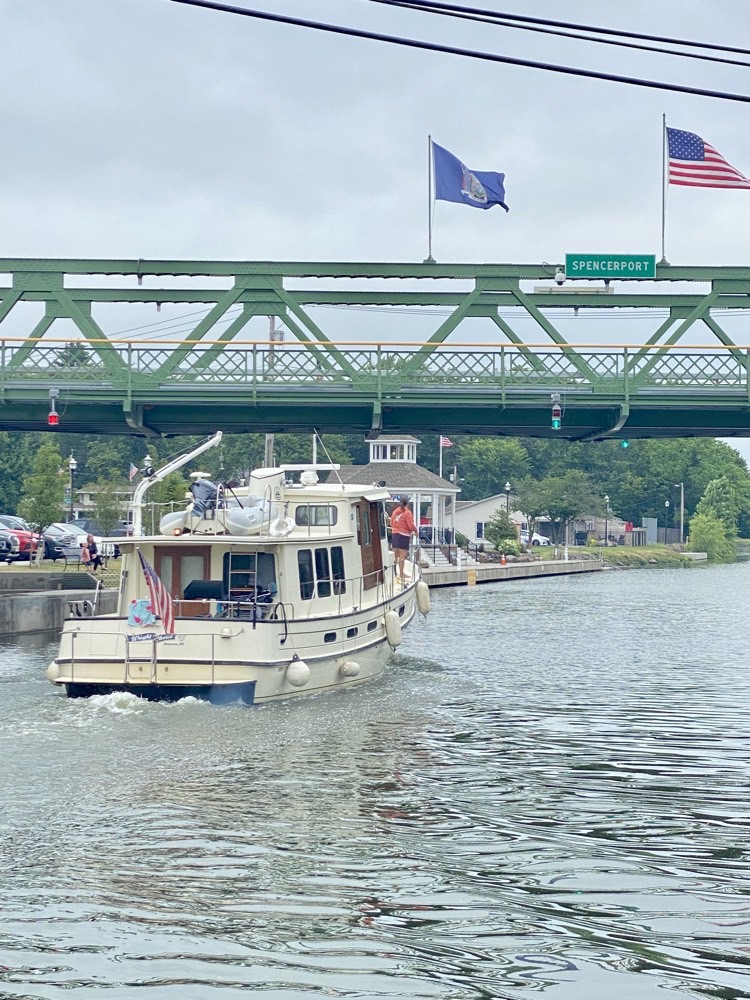 It was nice to sleep in before we left Buffalo. We took our time returning the gate card and checked out the observation tower then took P for a really long walk as once one the boat she would not be getting off for at least 24 hours. About 10am we shoved off on what would be the final leg of our trip. It was going to be about 220NM across Lake Erie and we thought we could do it in about 24 hours. This would be our longest crossing since we had originally purchased our first boat and did this same trip. Last time it took us 16 days to go from Sea Bright New Jersey to Gibraltar Michigan. This time we were on track to do it in half the time and didn't have to run from sun up to sun down. How things have changed in the last 14 years yet here we are still in a hurry to get home so I guess not everything changes.